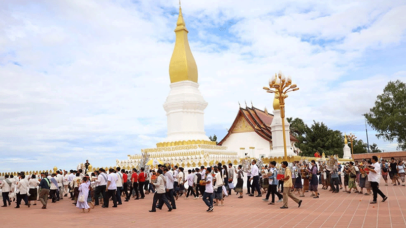 At the heart of the celebrations stands Sikhottabong Stupa, one of the most revered Buddhist monuments in Laos. Located in Thakhaek district, the provincial capital of Khammuan, the ancient stupa is closely associated with the historic Sikhottabong Kingdom, which once flourished along the Mekong River.