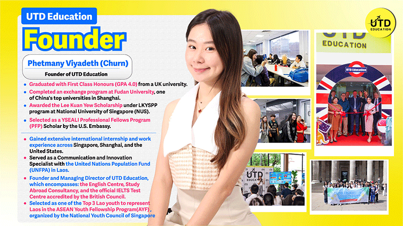 Today, Phetmany is the founder of UTD Education, one of Laos’s leading organizations in international education planning. Her mission is straightforward but powerful, to ensure that Lao students no longer walk the long, confusing path she once did.