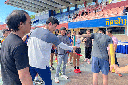During the visit, Mr Iizuka worked closely with Japan International Cooperation Agency (JICA) Overseas Cooperation Volunteer Yuto Kirihara, who is assigned to support athletics activities at Pakse Athletics Stadium.