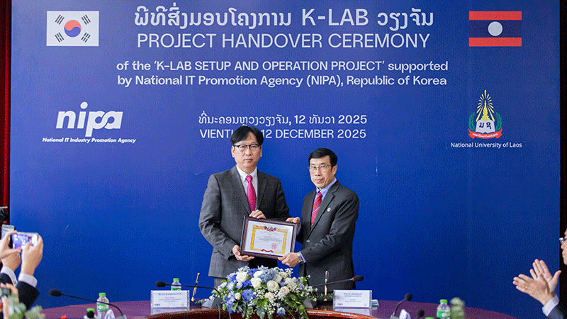 The National University of Laos (NUOL) last week held an official handover ceremony for the K-LAB Vientiane Establishment and Operation Project, marking the successful completion of a five-year Korea-Laos initiative in information and communication technology (ICT) education.