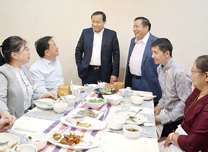 Mr Vongsack Serixay, along with guests and friends, enjoy lunch at the Soukvimarn Cuisine Lao Restaurant. |