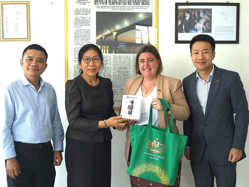 Australia donates equipment to the Vientiane Times to improve the newspaper’s online content. Deputy Australian Ambassador Ms Benita Sommerville handed over equipment yesterday to Editor-in-Chief Mrs Phonesavanh Thikeo to support the newspaper’s digital transformation, funded by the Laos-Australia Friendship Association. Australia has been a key supporter of the Vientiane Times since its establishment in 1994, providing volunteers, essential equipment, and specialised capacity building to help journalists strengthen their professionalism and adapt to evolving media trends. The new equipment will help the Vientiane Times produce high-quality video content, meeting the growing needs of Lao audiences in an era of rapid digital transformation. This support highlights Australia’s commitment to working with the Lao media and fostering the enduring relationship between Laos and Australia, now in its 74th year. |