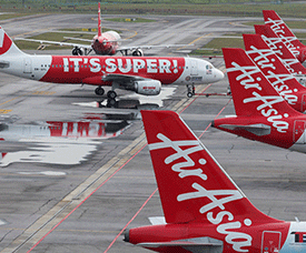 | AirAsia planes stand on the tarmac at Kuala Lumpur International Airport Terminal 2 (KLIA2) in Sepang, Malaysia. |