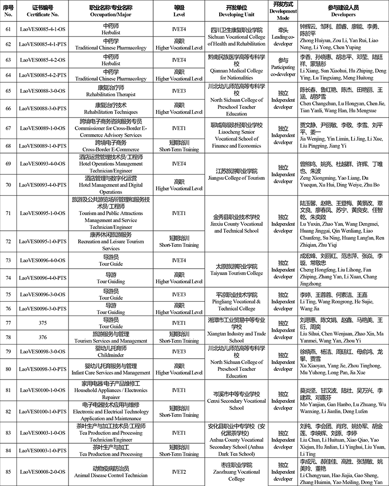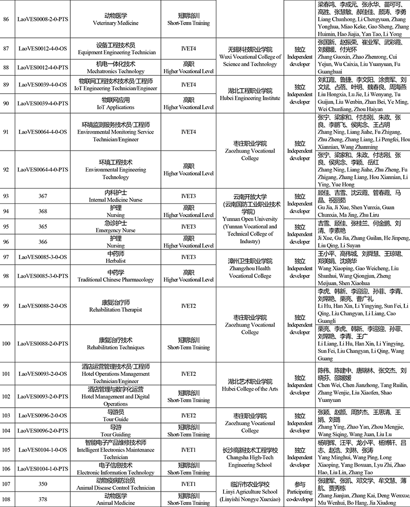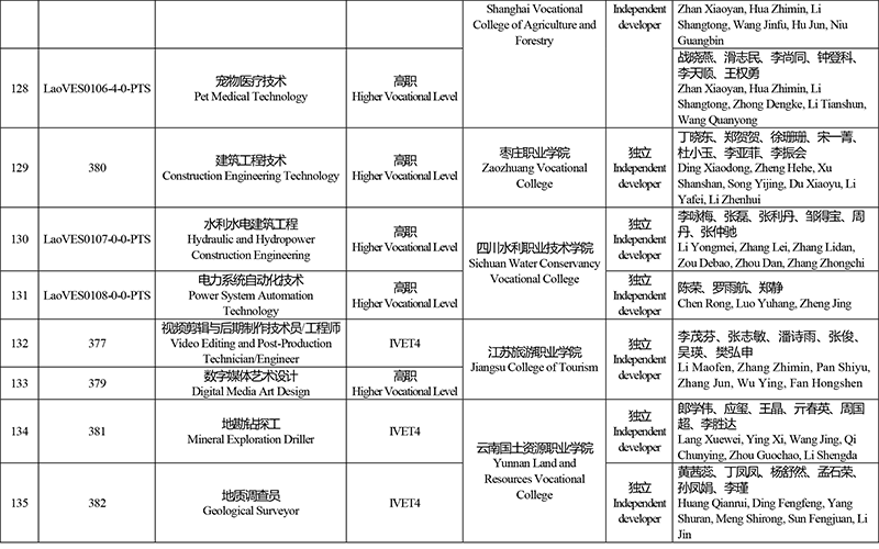 The standards released in this phase span multiple fields, including horticultural technology, animal disease control, mechanical engineering technology, mechatronics, new energy vehicles, industrial robotics, IoT applications, nursing, traditional Chinese pharmacology, rehabilitation therapy, cross-border e-commerce, and more. They cover IVET1 to IVET4 levels, higher vocational education, and short-term training programmes.