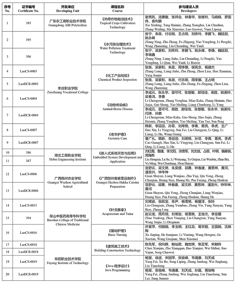 The digital curriculum resources released in this phase cover a wide range of specialised fields, including tropical crop cultivation, water pollution control, chemical product inspection, animal-borne diseases, geriatric care, embedded system development, acupuncture and tuina, basic nursing, building construction technology, chemical safety and clean production, and mine rescue and safety technology.