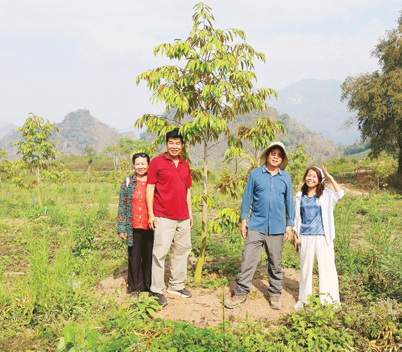 For years, this land was occupied by rubber and teak plantations. However, Mr Bounthieng saw an opportunity to create something more sustainable and interactive. He is systematically replacing the timber with “green gold” in the form of durian.
