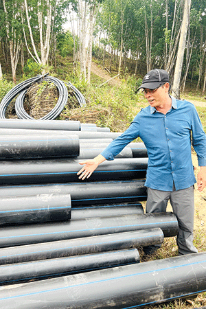 He uses high-grade products from Toyo Industry Lao Factory Sole Company Limited. These Lao-made pipes were chosen for their durability and the speed with which they can be installed in challenging, vertical terrain.