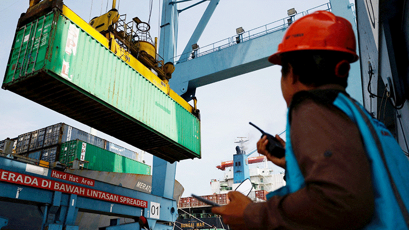 A container is unloaded from a ship onto a truck at Tanjung Priok Port in Jakarta, Indonesia. |
