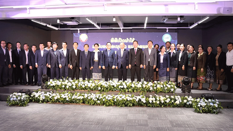 Deputy ministers, department heads, representatives from offices, centres, institutions, organisations, and private companies gather with Deputy Minister of Technology and Communications, Dr Santisouk Simmalavong, at the launch of a streamlined licensing system for businesses that operate online. The new, faster, method will replace the existing business licence application system, which requires business operators to physically visit a government office to submit the relevant documents, meaning the licensing process is slow and outdated. |