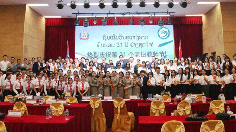 The Confucius Institute at the National University of Laos on Monday celebrated National Teachers' Day, welcomed new Chinese teachers and volunteers to the institute, and announced staff retirement benefits. The event was attended by the university’s Vice Presidents, Mr Thongsouk Keomany and Mr Sinthavone Dalavong, along with the Dean, Head of Office, Deputy Directors, Lao and Chinese staff, and students. The Confucius Institute now has 42 Chinese teachers, including 22 who started work this year. |