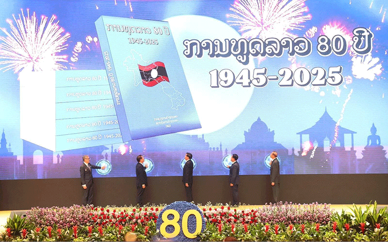 The highlight of the ceremony was the launch of a book titled “80 Years of Lao Diplomacy”, unveiled by President Thongloun Sisoulith alongside current and former leaders of the Ministry of Foreign Affairs.