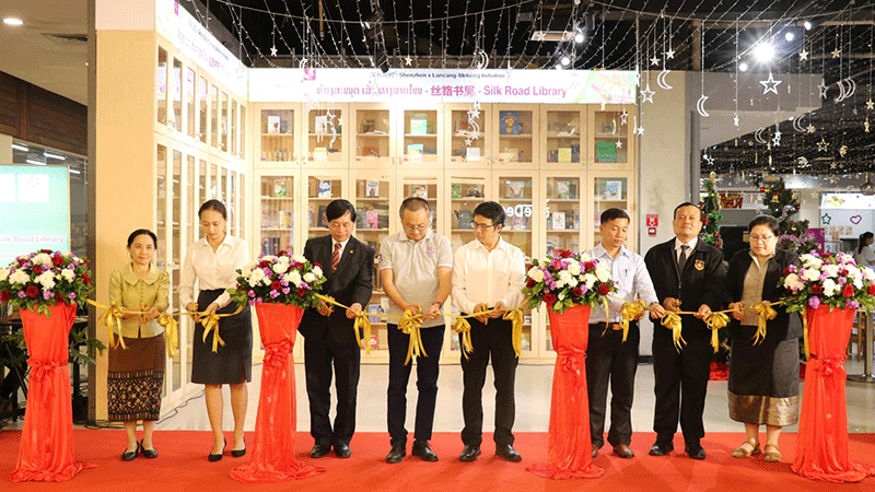 Representatives of the Vientiane Center, the Shenzhen Foundation for International Exchange and Cooperation and their partners on Wednesday gather for the grand opening of the Silk Road Library at the Vientiane Center. The project is part of China’s Belt and Road Initiative, and aims to foster cultural links between the peoples of Laos and China. |