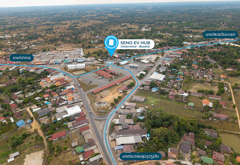 The Lao EV segment is set for a major shake-up! A strategic partnership between "Chalernchai Phatthana Company" (owner of the Seno Rest Area & Bus Station, PTT Seno Gas Station, and numerous projects in Savannakhet province) and "Laothani Tractor Sole Company (BlueDot)," in the same group of famously known as "Toyota Laothani," has launched the latest EV charging station: "Seno EV Hub Chalernchai | BlueDot" at [Seno Rest Area].