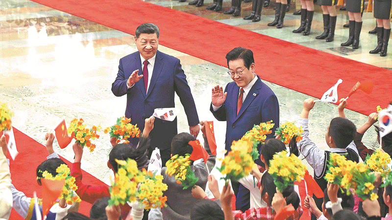 With a large business delegation, Lee started a four-day state visit to China, the first since he took office in June and the first trip by an ROK president to China since 2019. Xi held a grand welcoming ceremony for him before their official talks.
