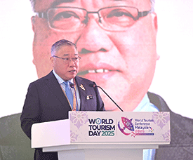 Malaysia’s Minister of Tourism, Arts and Culture, Dato’ Sri Tiong King Sing, speaks on World Tourism Day 2025 in Melaka on Saturday. |