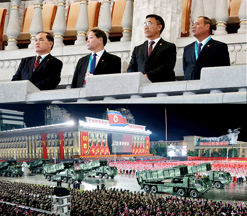General Vilay Lakhamfong (first right) attends celebrations marking the 80th anniversary of the Workers’ Party of Korea in Pyongyang.