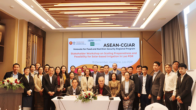 Government officials and development partners meet in Vientiane to discuss the expansion of solar-based irrigation to increase crop yields. The workshop, co-hosted by the Department of Irrigation and the International Water Management Institute (IWMI), focused on the “farmer-led irrigation” component of the ASEAN-CGIAR Innovate for Food and Nutrition Security Regional Programme. Participants evaluated the scalability of solar technologies in Laos, led by IWMI Principal Researcher in Innovation Scaling, Dr Thai Minh, and IWMI Senior Researcher in Hydrogeology, Dr Paul Pavelic. Talks covered Department of Irrigation project proposals and private sector investment, including early experiences from Attapeu province presented by a regional hydrogeology researcher. |