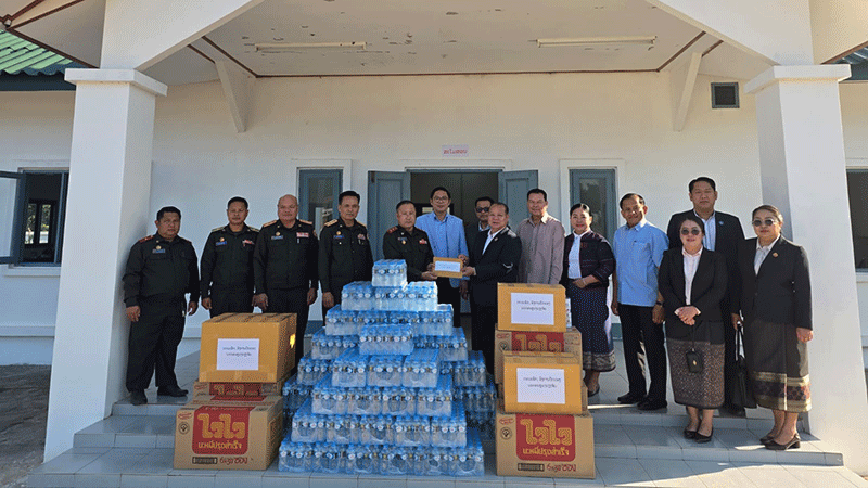 Members of Vientiane military groups on Tuesday deliver consumer goods and cash to Border Guard Unit 245 in Pakngum district, to mark the 77th anniversary of the Lao People’s Army. --Photo Vientiane Mai |