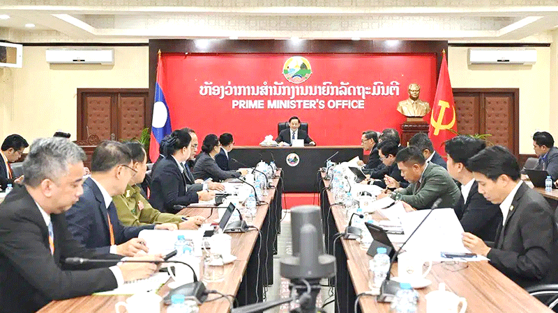 | Prime Minister Sonexay Siphandone chairs a meeting to discuss administrative digitalisation. --Photo Laophattana News |
