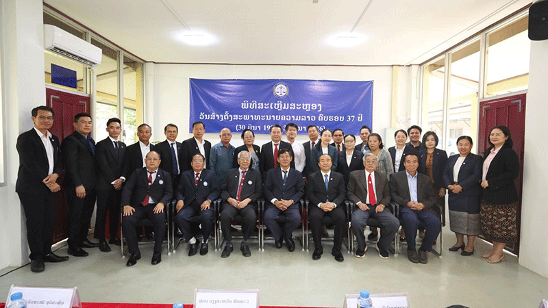 Deputy Minister of Justice Mr Khamphan Bounphakhom (front, centre) and President of the Lao Bar Association, Mr Viengsavanh Phanthalee (front, third from right), gather with executive and inspection committee members, former leaders and guests at the Lao Bar Association’s meeting room in Vientiane on March 30 to mark the Association’s 37th anniversary. The event reviewed the Association’s development over nearly four decades, with a call for lawyers to strengthen unity, improve legal skills, uphold professional ethics, and reinforce inspection work. |