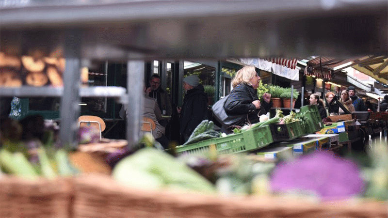 | Customers choose goods at a market in Vienna, Austria. |