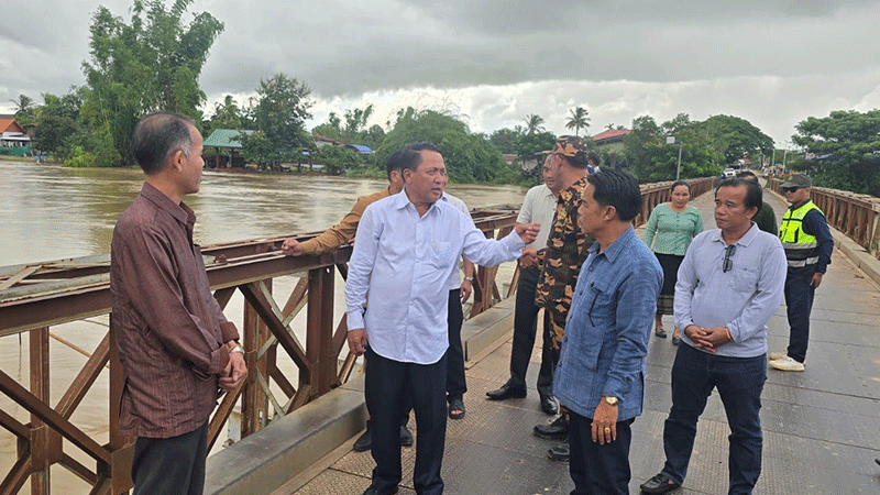 The Governor of Savannakhet province, Mr Bounchom Ubonpaseuth, and other officials on Tuesday monitored the flooding in Xonnabouly and Champhon districts following heavy rains during September 25-30 and the impact on people living in areas along the river. --Photo Pathetlao |
