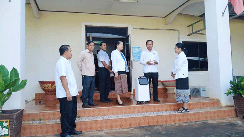 World Food Programme staff on Wednesday give oxygen tanks worth more than 8 million kip for patient treatment at Bachiengchaleunsouk district hospital in Champasak province.