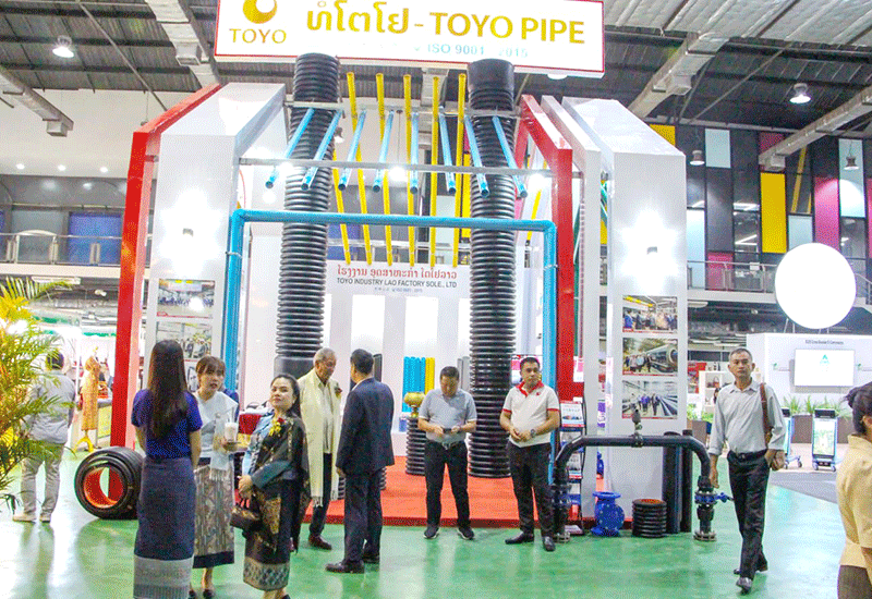 The Toyo Pipe booth at the ‘Made in Laos’ exhibition, showcasing internationally certified products that form the backbone of modern Lao infrastructure. |