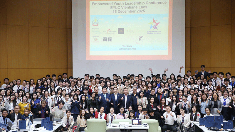 The founder and CEO of Add Courage, Mr Lawrence Lee, former Ambassador of Singapore Mr Sengkeo Pouangpadith, Director of the International Relations Office at the National University of Laos, Mr Phouvong Phimmakong, and some 200 students on Monday attend the Empowered Youth Leadership Conference Vientiane 2025, jointly organised with the National University of Laos. The gathering marks a milestone in helping to equip potential young Lao leaders with the mindset, skills, and confidence to shape the country’s future. |