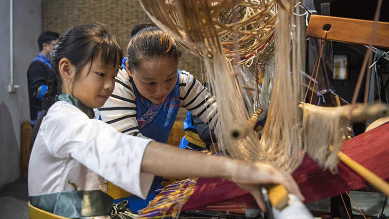 Zhuang brocade weaving is being revitalised by a new generation of young artisans. Pool photo.--PhotoPool