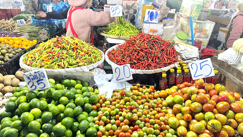 | The price of vegetables and other agricultural produce at several main markets in Vientiane has remained relatively stable compared to the overall inflation rate. --Photo Lao-Aussie Fresh Market |