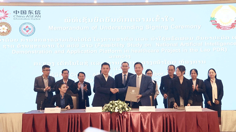 The Memorandum of Understanding was signed by the Head of Office of the Ministry of Technology and Communications, Mr Phouangpaseuth Keosouvan; Vice President of China-ASEAN Information Harbor Co., Ltd., Ms Xuan Yi; and company representatives.