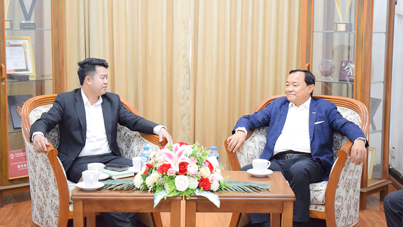 The Managing Director of Lao NewPay Technology Joint Venture Co., Ltd., Dr Meksavang Phommaly (left), has a friendly discussion with the Executive Vice President of the Lao National Chamber of Commerce and Industry, Mr Daovone Phachanthavong.