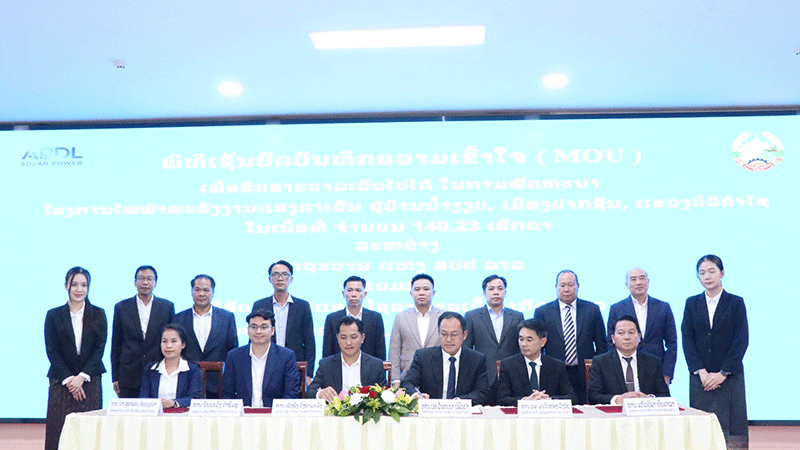 The government and APDL Solar Power Sole Co., Ltd. have entered into a Memorandum of Understanding (MOU) relating to a feasibility study concerning a solar energy project with a capacity 100 MW installation planned in Bolikhamxay province.