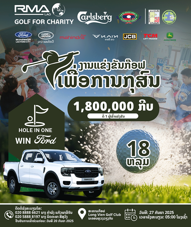 Under the title, “RMA Golf for Charity 2025”, the first-ever tournament will take place on September 27 from 5am to 3pm at the Long Vien Golf Club in Vientiane.