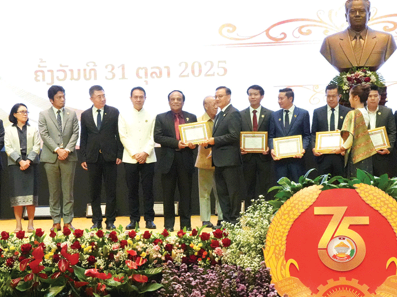 The award ceremony was held at the National Convention Centre in Vientiane, and the certificate was presented by the Minister of Finance, Mr Santiphab Phomvihane, to the Managing Director of LXML, Mr Saman Aneka, who accepted it on behalf of the company.