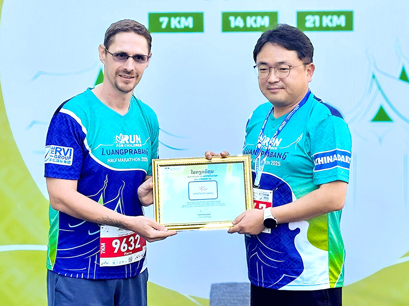 | Presentation of Certificates of Honour to successful participants of the “Run for Children” Half Marathon in Luang Prabang. |