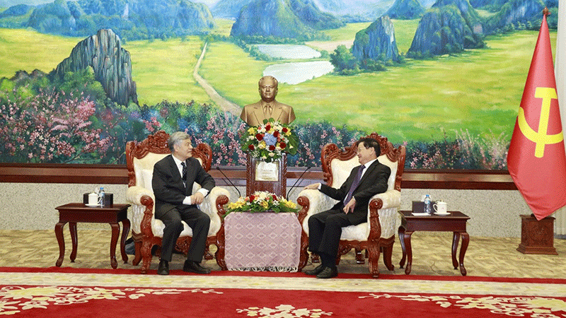 | Secretary General of the Lao People’s Revolutionary Party Central Committee and Lao President, Thongloun Sisoulith (right), on Wednesday receives a courtesy visit from a delegation from the Communist Party of China. |