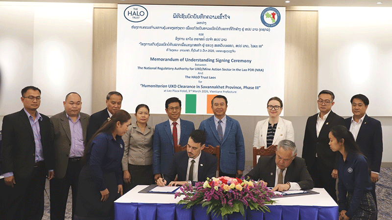 Ireland, through its Embassy in Hanoi, has announced funding of €500,000 to support the HALO Trust’s demining and bomb disposal work in Laos over the next 12 months. The announcement was made during a meeting in Vientiane on March 3.