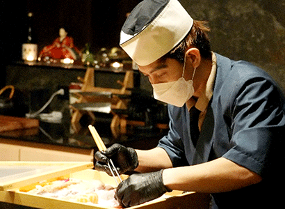 | With years of experience, the Japanese chef meticulously decorates each dish for diners seated at the counter, turning every plate into a work of art. |