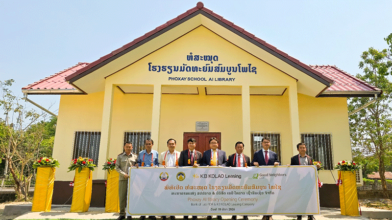 | KB KOLAO Leasing Company Limited and the Non-Bank Financial Institution Supervision Department of the Bank of the Lao PDR (BOL) attend the opening ceremony of the AI library at Phoxay Secondary School in Naxaithong district, Vientiane. |