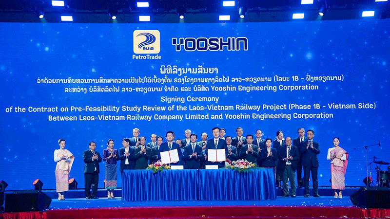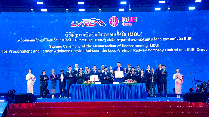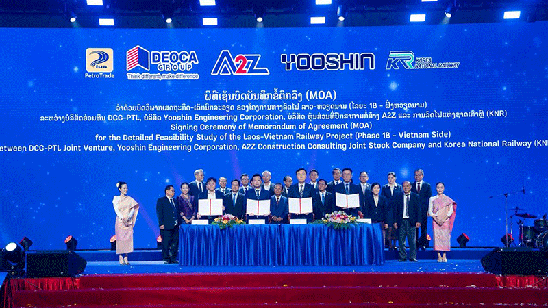 The signing ceremony was held on March 31 in Vientiane, honorably chaired and witnessed by Mr Saleumxay Kommasith, Deputy Prime Minister of Laos and Head of the National Steering Committee for the Laos-Vietnam Railway Project.