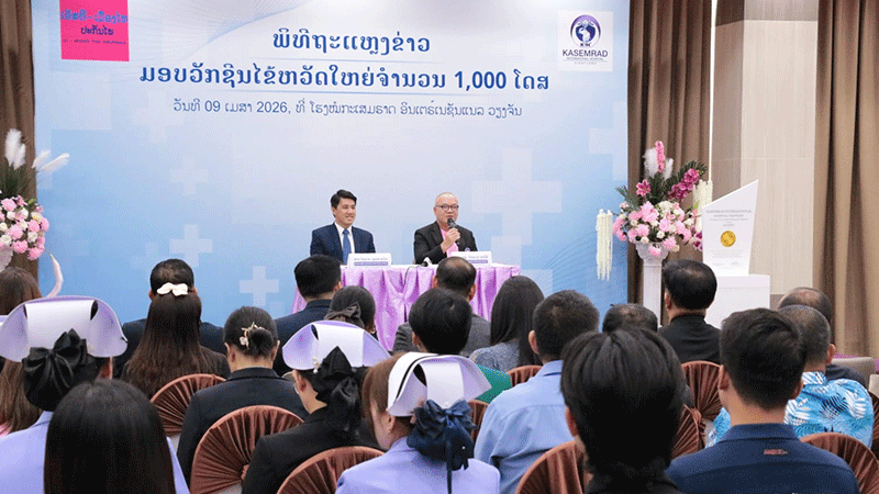 On the afternoon of April 9, 2026, a press conference was held at Kasemrad International Hospital Vientiane to announce the collaboration in delivering 1,000 influenza vaccine doses.