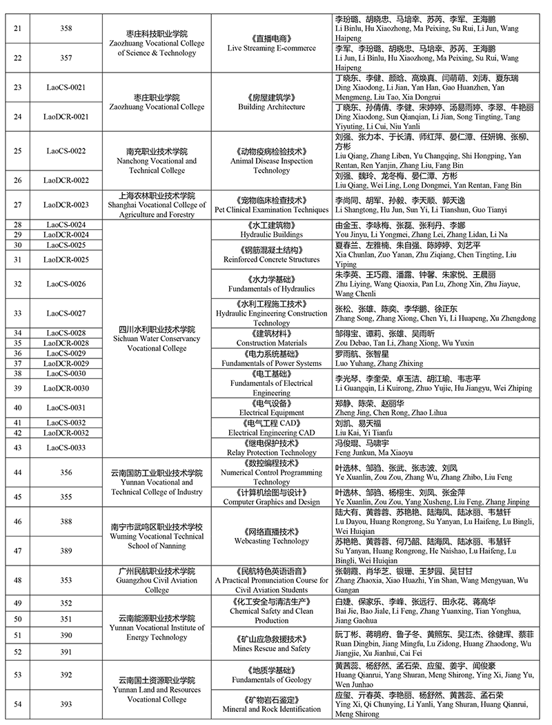 The digital curriculum resources released in this phase cover a wide range of specialised fields, including tropical crop cultivation, water pollution control, chemical product inspection, animal-borne diseases, geriatric care, embedded system development, acupuncture and tuina, basic nursing, building construction technology, chemical safety and clean production, and mine rescue and safety technology.