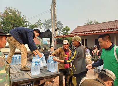 The support is aimed at assisting officials and volunteers fighting forest fires in the Phou Khao Khouay mountainous area of Pakngum. The company has committed 100 packs of 1,500 ml Tigerhead water to each of the three affected districts – Pakngum, Sangthong and Sikhottabong.