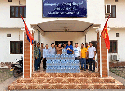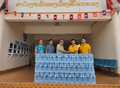 On April 13, 2026, the Lao Brewery Company's Director of Corporate Affairs, CSR and Sustainability, Mr Sithixay Ketthavong, and representatives of the company’s mass organisations handed over Tigerhead drinking water to the Pakngum District Disaster Unit. The donation was received by the Chairman of the Pakngum District Administration Committee, Mr Keopaseuth Xaypanya.