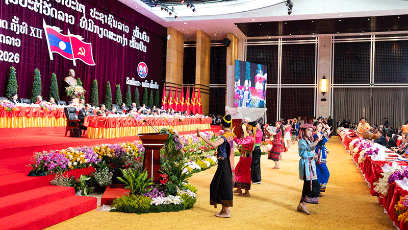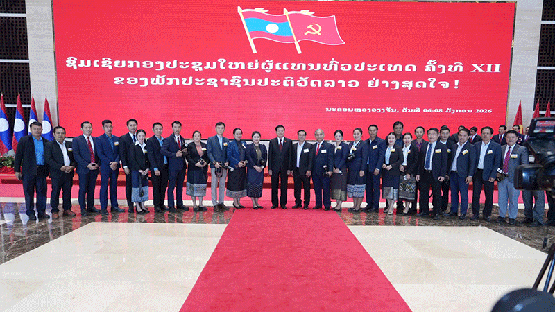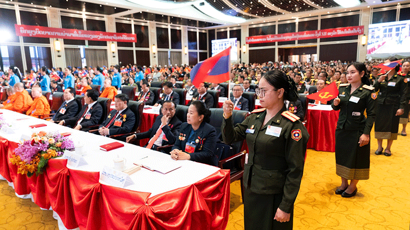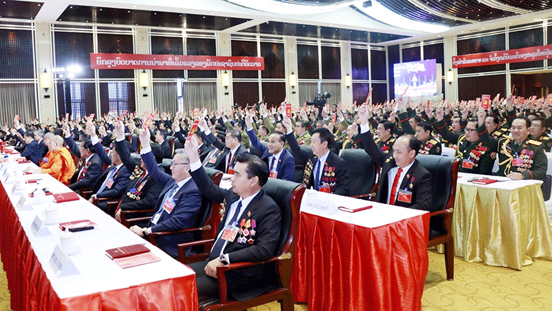 Party Secretary General Thongloun Sisoulith and members of the media gather at the National Party Congress.