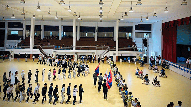 Students practice routines in readiness for performances at the opening ceremony of the National Disabled Games, which takes place at the National University of Laos on December 14. --Photo Lao National TV |