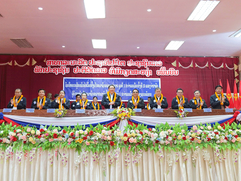 Candidates standing for election to the 10th National Assembly and the Champasak Provincial People’s Council, led by Prime Minister Sonexay Siphandone, meet with voters in Xanasomboun district. --Photo Champamai newspaper |