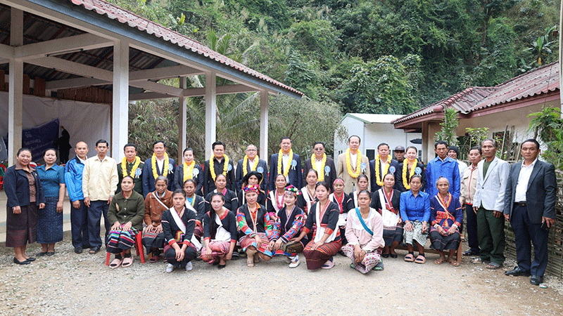 Candidates standing for election to the 10th National Assembly and Attapeu Provincial People's Council are welcomed by local residents when they visited the province on Wednesday. Some 106,716 voters from five districts are registered to vote for new National Assembly and Provincial Council members on February 22. --Photo Lao Security News |